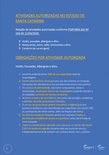 Orientações às atividades autorizadas pelo Governo do Estado de Santa Catarina.