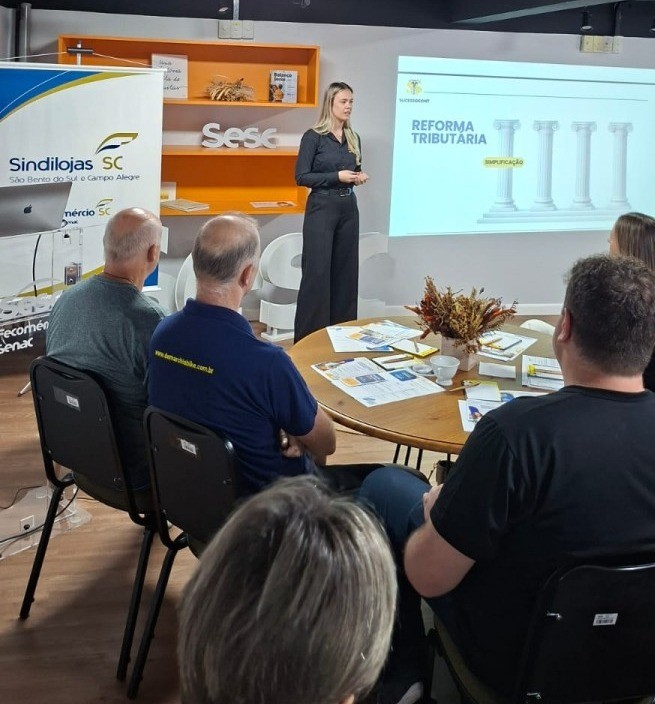 23/04/2026A Reforma Tributária representa uma das mudanças mais significativas no sistema fiscal brasileiro das últimas décadas. Suas implicações vão muito além da reestruturação de impostos — ela impacta diretamente a economia, o ambiente de negócios, os entes federativos e o dia a dia dos cidadãos. Com o objetivo de esclarecer os principais pontos da proposta e discutir seus efeitos sobre nosso setor. “Os impactos da REFORMA TRIBUTÁRIA para o COMÉRCIO”. O workshop foi conduzido pela contadora BIANCA PRIEBE - Coordenadora Fiscal da Sucesso Contabilidade.